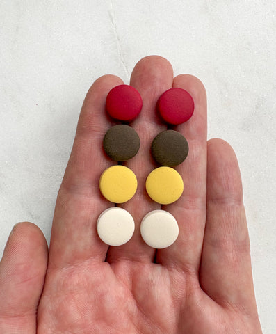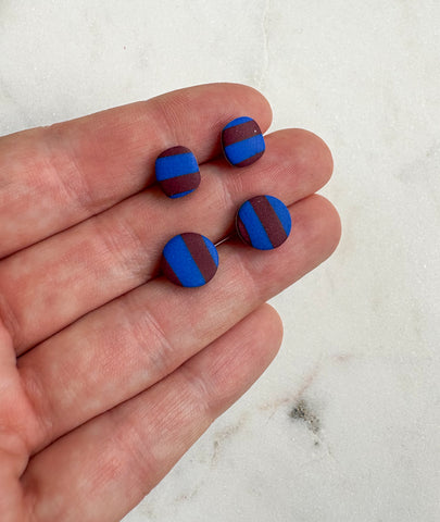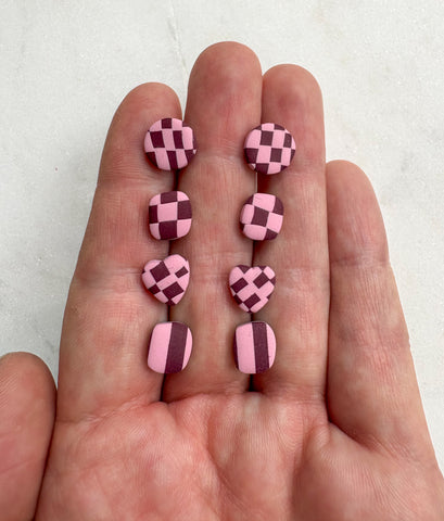 Seven pairs of mini studs, each one pulling from the colours and patterns across The Spring Edit — stripes, checkerboard and colour-block, reworked into their simplest form.